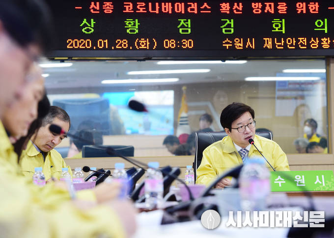 28일 시청 재난안전상황실에서 ‘신종 코로나바이러스 확산 방지를 위한 상황점검회의’를 주재한 염태영 시장은 “시민들이 감염을 예방하고, 자신을 스스로 보호할 수 있도록 정보를 공개해야 한다”며 “또 증상을 느낀 시민이 증상 단계에 따라 어떻게 행동하고, 어떤 진료 기관을 찾아가 진단을 받아야 하는지 명확하게 안내하라”고 말했다.