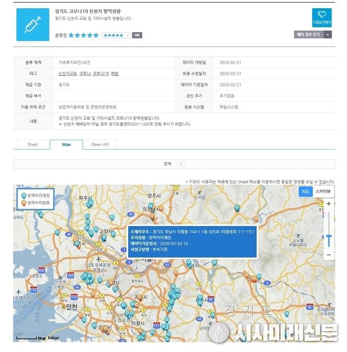 경기도가 ‘경기데이터드림’을 통해 경기지역 신천지 강제폐쇄시설 세부주소와 방역현황을 한눈에 확인할 수 있는 지도서비스를 시작했다.