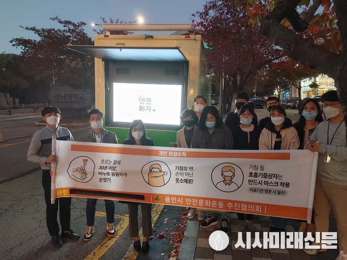 (시사미래신문) 용인시는 지난 22일 강남대학교 정문 앞에서 지역 안전문화 확산을 위해 시민들을 대상으로 비대면 안전캠페인을 벌였다.