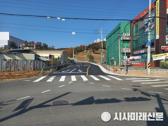 이에 구는 국공유지를 활용해 넓이 2.8M, 길이 55M의 우회전 차로를 1개 신설하고 기존 도로 폭을 조정해 왕복 3차선 도로로 선형을 다듬었다.