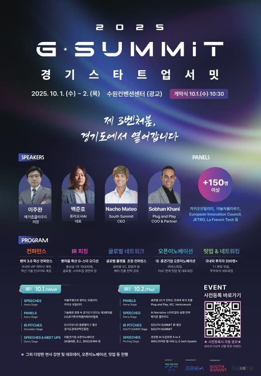 (시사미래신문) 국내 최고 수준의 글로벌 스타트업 투자 박람회인 ‘경기 스타트업 서밋(G-SUMMIT)’이 오는 10월 1일부터 2일까지 수원컨벤션센터에서 열린다.