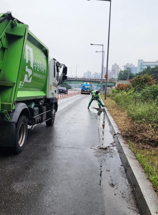 (시사미래신문) 수원특례시 영통구는 '대한민국 새단장' 캠페인의 일환으로 민족 최대의 명절 추석을 맞아 고향을 찾는 귀성객들에게 쾌적하고 안전한 도로 환경을 제공하고자 영동고속도로 동수원나들목 진출입로 집중 환경정비를 실시했다.