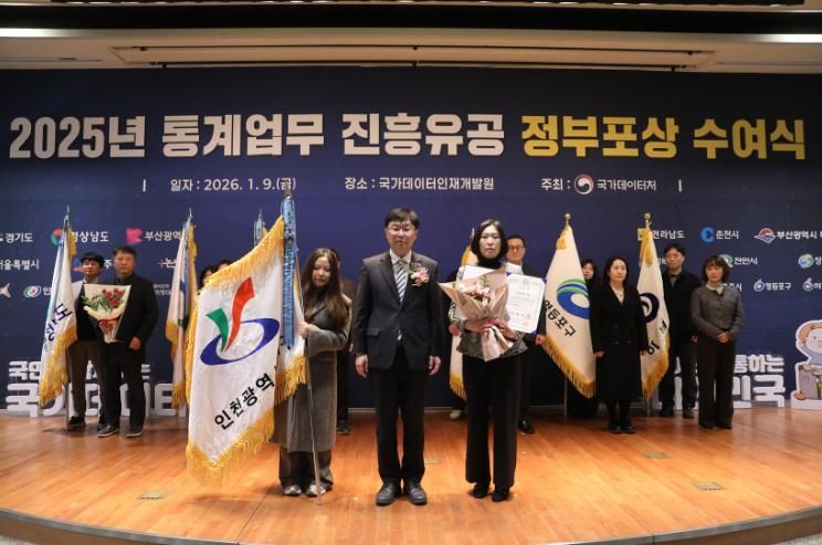 (시사미래신문) 인천 서구는 지난 9일 통계업무 분야에서 우수한 성과를 인정받아 ‘2025년 통계업무 진흥유공(통계조사 부문)’ 국무총리 기관 표창을 수상했다고 밝혔다.