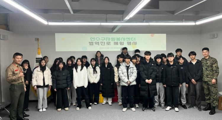 (시사미래신문) 연수구 자원봉사센터는 지난 1월 12일 겨울방학을 맞아 청소년 자원봉사자 30명을 대상으로 병역진로설계지원센터에서 병역직업체험 프로그램을 운영했다고 밝혔다.
