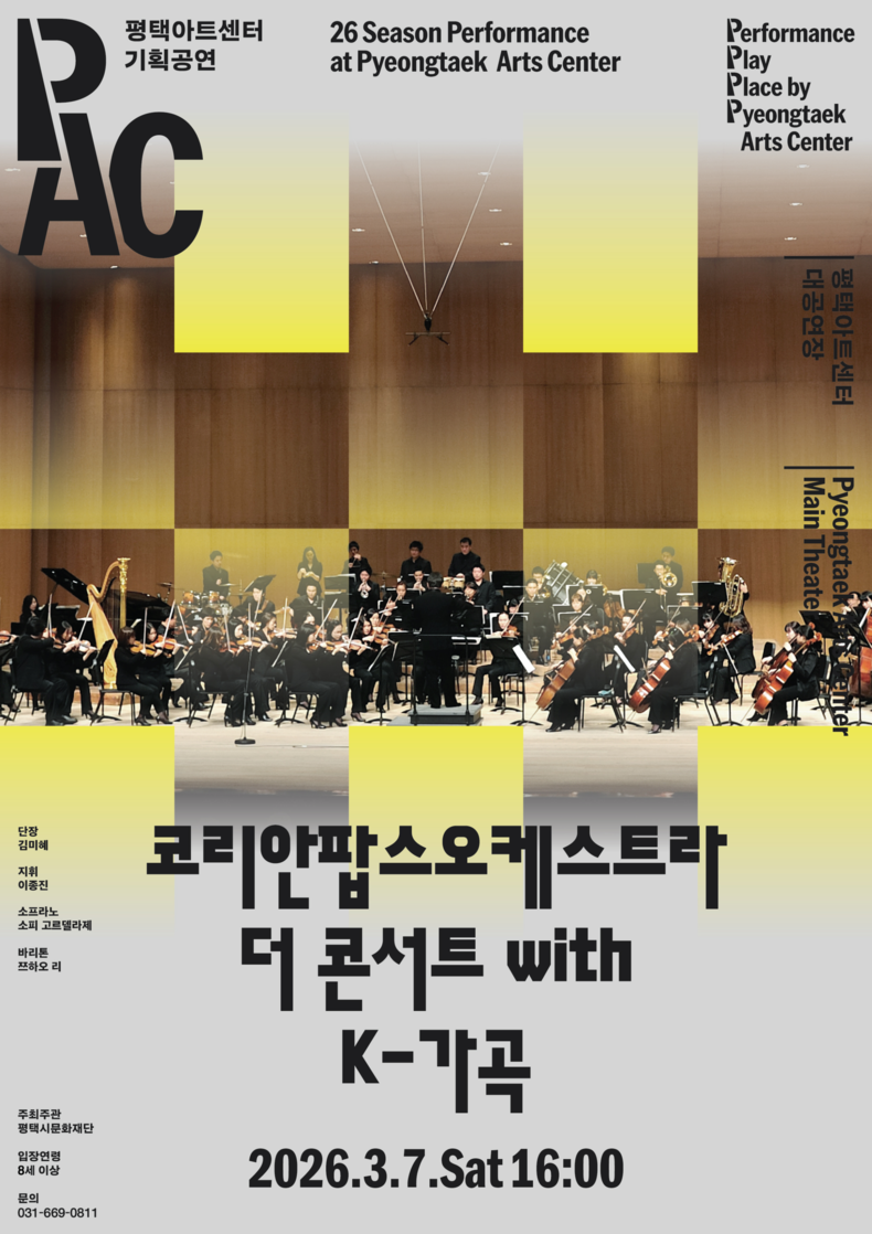 (시사미래신문) 평택의 새로운 문화 중심지로 자리 잡은 평택아트센터가 3월, 다양한 장르의 기획공연을 선보이며 음악의 다양성을 넓힌다. △코리안 팝스 오케스트라 더 콘서트 with K-가곡(3월 7일) △국립오페라단 피가로의 결혼(3월 13~14일) △윈튼 마살리스 & 재즈 앳 링컨센터 오케스트라(3월 27일)로 구성된 3월 기획공연은 대중성과 예술성, 장르적 다양성을 모두 갖춘 무대로 벌써부터 기대를 모으고 있다.