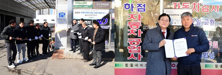 올해 모범사업자로 선정된 업체는 ▲(유)남도자동차공업사(대표 김상국·김기태) ▲하점자동차공업사(대표 서성찬) 등 총 2개소다. 이들 업체는 2026년 1월 1일부터 2030년 12월 31일까지 5년간 모범사업자 지위를 유지하게 된다.