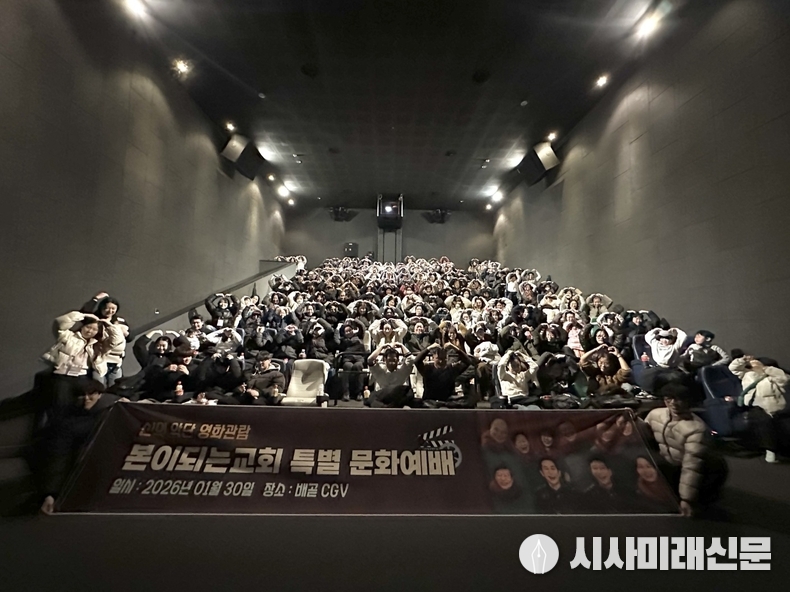 (시사미래신문) 경기도 시흥시 정왕동에 위치한 본이되는교회(담임목사 김은식)는 지난 1월 30일 저녁, 경기도 시흥시 배곧동에 위치한 배곧 CGV에서 성도 약 150여 명과 함께 특별 문화예배의 일환으로 영화 ‘신의 악단’ 단체 관람 시간을 가졌다.