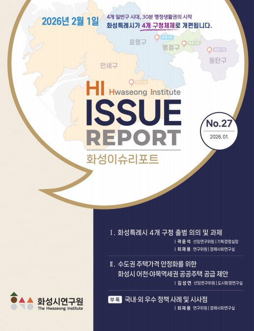 화성이슈리포트 제27호는 화성시연구원 홈페이지(https://www.hi.re.kr) 및 화성시청 홈페이지(https://www.hscity.go.kr) 시정알림방에서 확인할 수 있다.