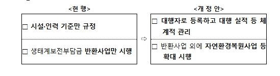 셋째, 기존 자격 요건만으로 운영되던 자연환경보전사업 대행자 제도를 등록제로 전환하여 전문성을 강화한다.