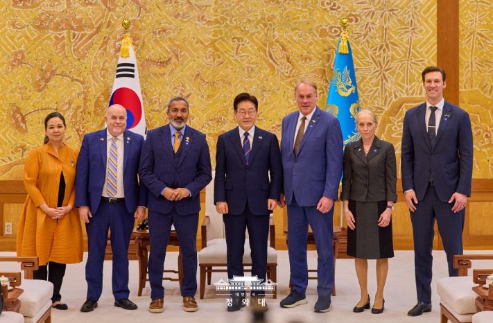 (시사미래신문) 이재명 대통령은 3월 31일 오후 청와대에서 아미 베라(Ami Bera) 하원 동아태소위원회 간사 등 공화·민주 양당 의원으로 구성된 미국 의회 코리아스터디그룹 대표단을 접견하고 최근 중동 전쟁, 한미관계, 한반도 문제 등에 대해 의견을 나눴다.
