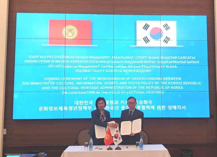 (시사미래신문) 문화재청은 4월 11일 오전 10시 30분(현지 시간) 키르기즈공화국 수도 비슈케크에서 키르기즈공화국 문화정보체육청년정책부(장관 알튼백 막수토브: Maksutov Altynbek Askarovich)와 문화유산 분야 교류 협력을 강화하기 위한 양해각서를 체결했다. 또한 같은 날 문화재청 산하 특수법인인 유네스코아태무형유산센터(사무총장 김지성)는 유네스코 키르기즈국가위원회(사무총장 사비라 솔톤겔디에바)와 해당 양해각서의 내용을 구체화하기 위한 문화재청의 국제개발협력(Official Development Assistance, ODA) 사업 추진 내용이 포함된 협의의사록(Record of Discussion, RD)을 체결했다.