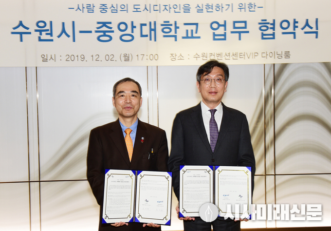 수원시와 중앙대학교는 2일 수원컨벤션센터에서 ‘도시디자인 산학협력 발전을 위한 협약’을 체결하고, 수원시 공공디자인의 발전을 위해 협력하기로 했다.