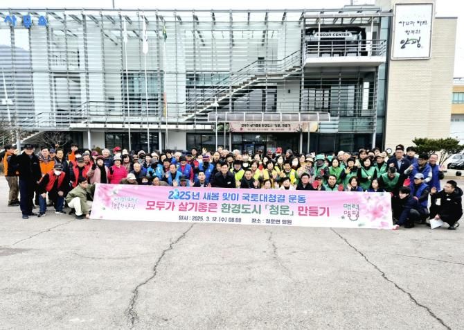 이날 국토 대청결운동에는 전진선 양평군수를 비롯해 청운면 이장협의회, 새마을회, 주민자치위원회, 바르게살기운동협의회, 지역사회보장협의체, 적십자봉사회, 해병전우회, 의용소방대, 자율방범대 등 관내 기관·단체 회원들과 황경구 청운면장 및 면사무소 직원 등 80여 명이 참여했다.