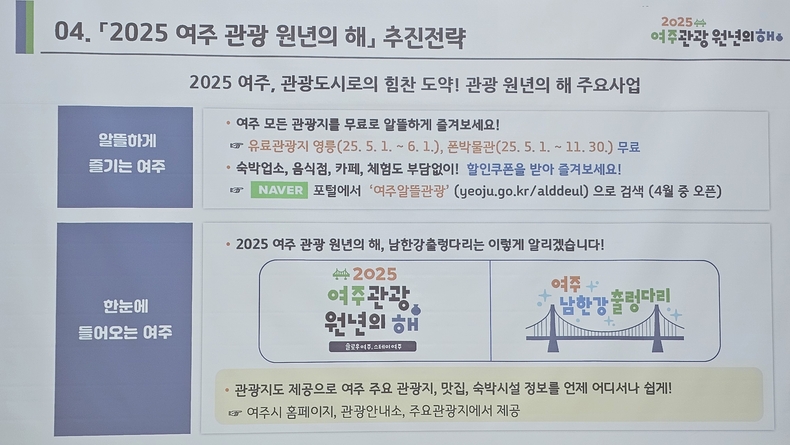 (시사미래신문) 여주시가 4월 3일 '2025 여주관광 원년의 해' 시민결의대회 및 남한강출렁다리 임시개통 걷기 행사를 개최했다. 이날 행사에는 주요내빈 소개와 결의문 낭독, 친절구호 합창(카드섹션)이 있은후 이충우 시장을 비롯 박두형 여주시의회 의장과 시의원 등이 여주 남한강출렁다리로 이동, 임시개통 걷기 행사와 기념 식수 순으로 진행됐다.