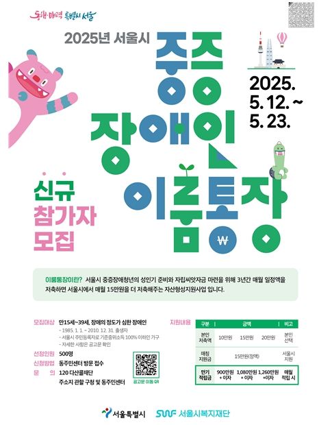 (시사미래신문) 서울시는 일하기 어려운 중증장애청년이 경제적 부담을 덜고, 미래를 체계적으로 준비해 자립 기반을 마련할 수 있도록 ‘이룸통장’ 사업을 추진한다.