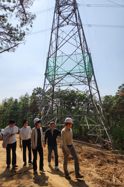 <수원특례시의회 문화체육교육위원회 장미영 위원장(오른쪽 두 번째)이 관련 부서와 함께 송전철탑 이설 현장을 점검하고 있다.>