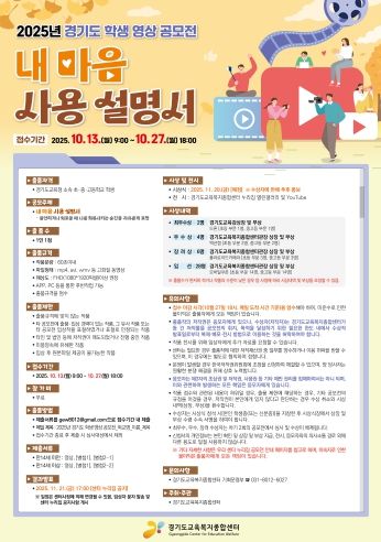 (시사미래신문) 경기도교육복지종합센터가 경기도교육청 소속 초 중 고등학교 학생들을 대상으로 ‘2025년 경기도 학생 영상 공모전’을 개최한다.