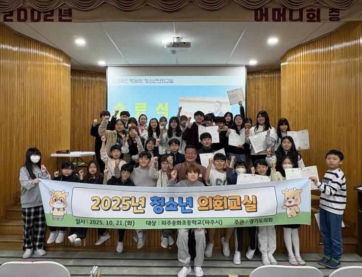 (시사미래신문) 경기도의회 건설교통위원회 안명규 의원(국민의힘, 파주5)은 10월 21일 파주송화초등학교 시청각실에서 열린 ‘제36회 청소년의회교실’에 참석해 파주 송화초등학교 학생들과 함께 모의의회를 체험하며 민주주의의 가치와 의회의 역할을 함께 나누는 뜻깊은 시간을 가졌다.