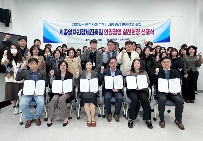 (시사미래신문) 세종일자리경제진흥원(원장 이홍준)은 21일 본원 2층 교육실에서 ‘인권경영 실천헌장 선포식’을 열고 모든 임직원이 인권을 경영의 핵심 가치로 삼아 실천해 나갈 것을 다짐했다.