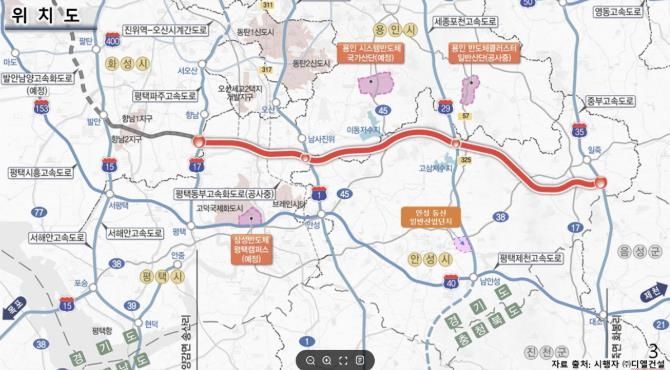 총사업비 약 2조 원이 투입되는 이번 사업은 2030년 착공해 2035년 개통을 목표로 하고 있다. 이번 고속도로는 화성시 양감면에서 시작해 평택시, 용인시를 거쳐 안성시 일죽면까지 연결되는 총연장 45.3km 구간으로, 왕복 4~6차로 규모로 조성된다.