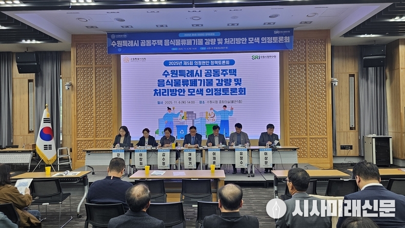 (시사미래신문) 수원특례시의회가 6일 시청 별관1층 중회의실에서 공동주택의 음식물류 폐기물 감량과 처리 효율화를 위한 정책토론회를 열었다.