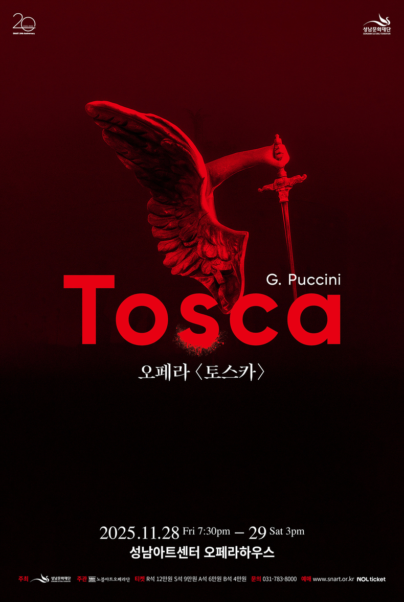 (시사미래신문) 성남문화재단(대표이사 윤정국)은 성남아트센터 개관 20주년을 기념해, 푸치니의 걸작 오페라 ‘토스카’를 오는 11월 28일(금)과 29일(토) 양일간 성남아트센터 오페라하우스에서 공연한다.