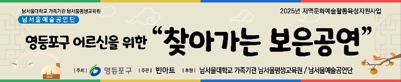 영등포구가 주최하고 빈아트가 주관하는 이번 행사는 문화 향유 기회가 부족한 지역 어르신들을 직접 찾아가 다채로운 전통 예술 공연을 선보이고, 따뜻한 위로와 삶의 활력을 전하기 위해 마련되었다.