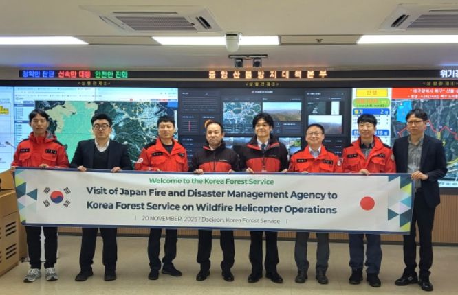 금시훈 산림청 산불방지과장은 “이번 일본 대표단 방문을 계기로 우리나라의 산불 대응 정책 및 기술을 일본과 공유하고, 양국 간 산불 대응 협력을 한층 강화해 나가겠다.”며 “글로벌 산불 위협이 커지고 있는 만큼 국제사회와의 기술 교류와 공조를 지속 확대하겠다.”라고 말했다.
