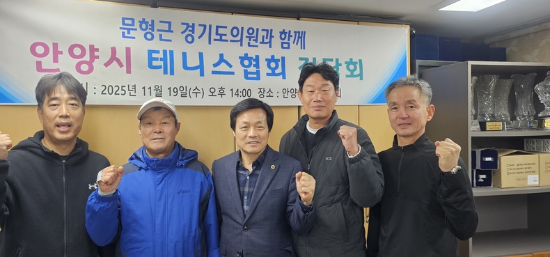 (시사미래신문) 경기도의회 문형근 의원(더불어민주당, 안양3)이 11월 19일 안양시 테니스협회(회장 김기주) 회원들과 함께 정담회를 갖고, 지역 생활체육인들이 보다 안전하고 쾌적한 환경에서 운동할 수 있도록 추진 중인 시설 개선 지원 내용을 공유하며 향후 계획을 논의했다고 밝혔다.