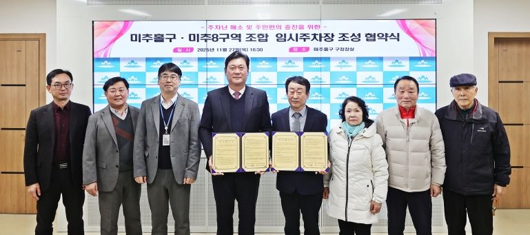 이번 협약에 따라 미추8구역 조합은 사회공헌사업의 일환으로, 초등학교 건립이 예정된 부지에 면적 4,523㎡, 총 125면 규모의 임시주차장을 조성해 내달 1일부터 지역 주민에게 무료로 개방할 계획이다.