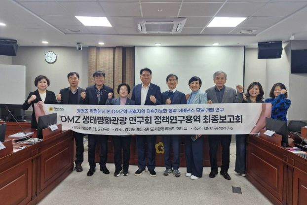 (시사미래신문) 경기도의회 의원연구단체인 DMZ생태평화관광 연구회(회장 오준환 의원)는 지난 27일 경기도의회 도시환경위원회 회의실에서 '커먼즈 관점에서 본 DMZ와 배후지의 지속가능한 협력 거버넌스 모델 개발 연구' 용역 최종보고회를 개최했다.