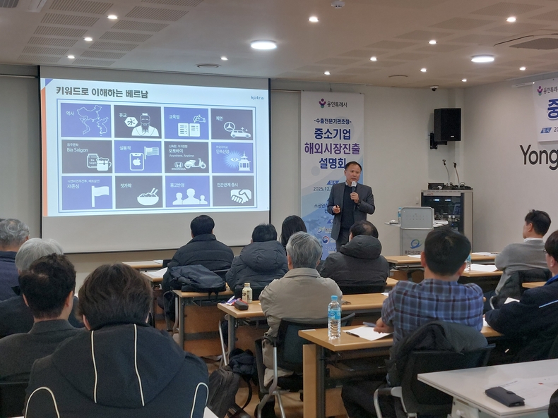 (시사미래신문) 용인시산업진흥원(이사장 이상일)은 12월 3일 소공인·스타트업 허브에서 용인을 비롯한 경기도 소재 중소기업의 해외시장 진출 지원을 위한 설명회를 개최했다고 밝혔다. 이번 설명회는 수원세관과 KOTRA와 공동으로 마련됐으며, 동남아시아 주요 교역국인 베트남과 인도네시아의 최신 시장 동향과 진출 전략을 실무 중심으로 제공한 것이 특징이다.