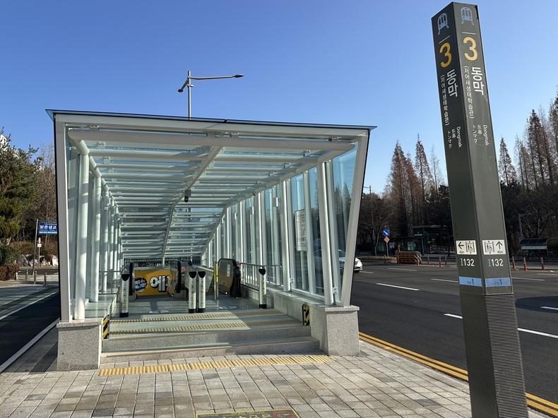 총사업비 45억 원이 투입된 이번 사업을 통해 동막역 3번 출구에는 상·하행 에스컬레이터 2대가, 연결통로 내부계단 구간에는 수직형 휠체어리프트 1대가 설치됐다.