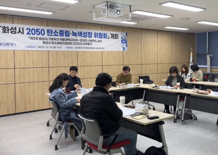 (시사미래신문) 화성특례시는 지난 23일 화성동탄2인큐베이팅센터에서 ‘2050 탄소중립·녹색성장위원회’ 회의를 열고 '제3차 기후위기 적응대책(2026~2030)' 최종(안)과 탄소중립지원센터 2025년 성과 평가를 심의했다.