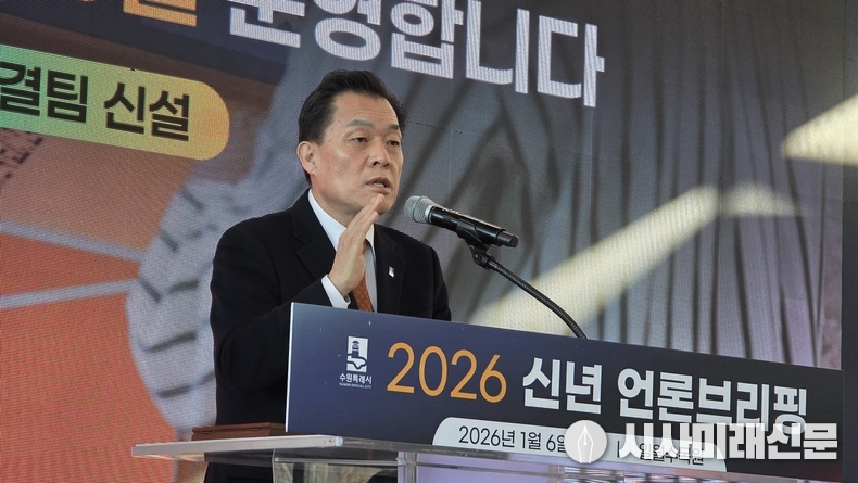 (시사미래신문) 이재준 수원특례시장은 6일 일월수목원에서 열린 신년 언론브리핑에서 2026년 시정 운영 방향과 주요 정책 과제를 밝혔다.