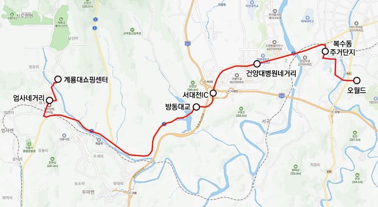 편도 기준 소요시간은 약 74분으로, 신도안에서 오월드를 연결하는 효율적인 이동 수단을 제공하게 된다.