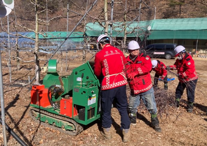 파쇄지원사업은 영농부산물(고춧대, 과수가지 등) 처리가 힘든 산림 인접지 농가를 찾아가 수거·파쇄하는 사업으로, 지원을 원하는 농가에서 구미국유림관리소에 직접 신청하거나 해당 시·군 농업기술센터를 통해 지원받을 수 있다.