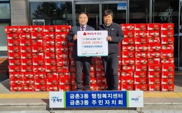 (시사미래신문) 파주시 금촌3동은 ㈜화림중앙식자재마트 파주금촌역점으로부터 병오년 설 명절을 맞아 지난 3일, 라면(20개입) 200상자를 관내 취약계층과 노인 가구를 위해 기탁하며 따뜻한 나눔을 실천했다.