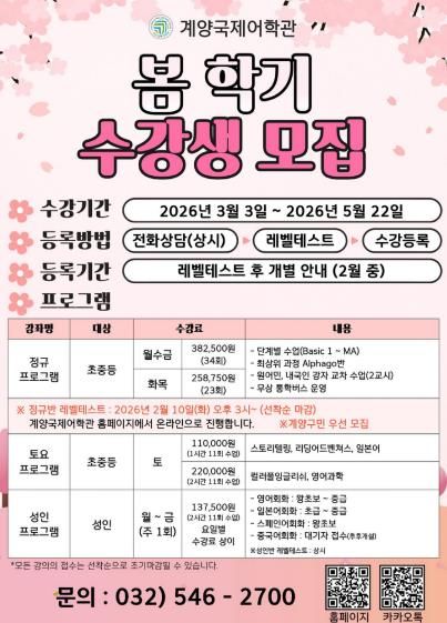 (시사미래신문) 인천 계양국제어학관이 2026년 봄 학기 프로그램 수강생을 모집한다고 밝혔다.
