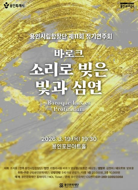 (시사미래신문) 용인문화재단은 오는 3월 19일 오후 7시 30분, 포은아트홀에서 용인시립합창단 제11회 정기연주회 '바로크 – 소리로 빚은 빛과 심연'을 개최한다.