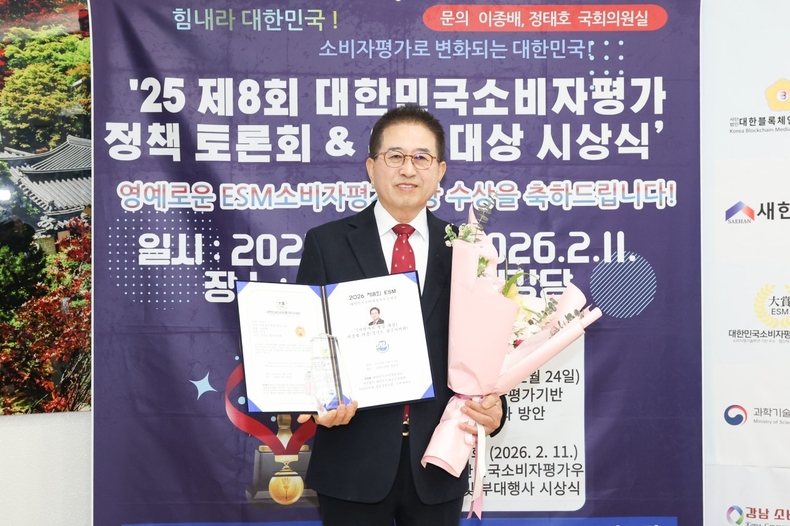 (시사미래신문) 국회 도서관에서 열린 2026 제8회 ESM대한민국소비자평가우수대상 정책토론회 및 시상식에서 광주시의회 허경행 의장이 지난 11일(수) 지방자치/행정 부문 대상을 수상했다고 밝혔다.
