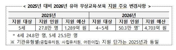 (시사미래신문) 교육부는 2026년부터 유아 무상교육·보육 지원 대상을 4~5세로 확대한다.
