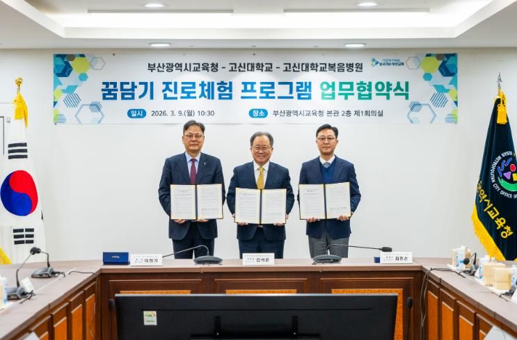 (시사미래신문) 부산광역시교육청은 9일 오전 교육청 회의실에서 고신대학교, 고신대학교복음병원과 ‘꿈담기 진로체험 프로그램’운영을 위한 업무협약을 체결했다.