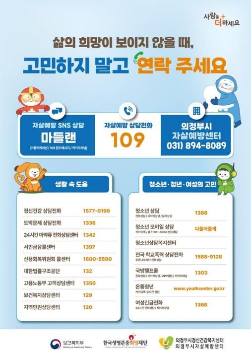 (시사미래신문) 의정부시 보건소는 봄철 자살률이 증가하는 자살 고위험 시기(3~5월)를 맞아 시민의 생명을 보호하고 정신 건강 인식을 높이기 위한 자살 예방 집중 홍보 활동을 실시한다.
