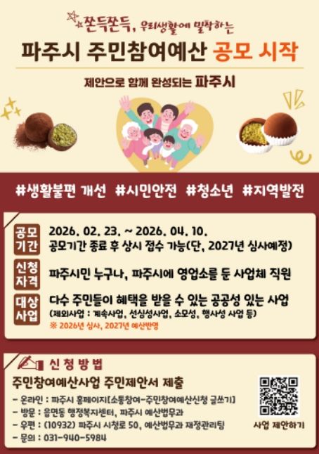 (시사미래신문) 파주시는 2027년도 예산 편성에 반영할 주민참여예산 시민 제안을 오는 4월 10일까지 접수한다.