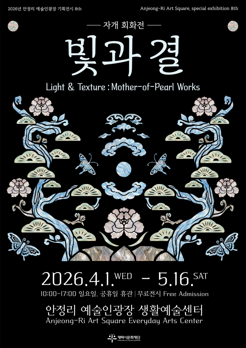 (시사미래신문) 평택시문화재단(대표이사 이상균)은 오는 4월 1일부터 5월 16일까지 안정리 예술인광장 생활예술센터에서 2026년 안정리 예술인광장 상반기 기획전시 8th 《빛과 결-자개 회화전》을 개최한다.
