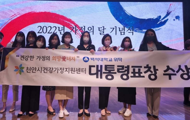 (시사미래신문) 천안시 건강가정지원센터(센터장 김장옥)가 20일 서울 대한상공회의소에서 여성가족부 주관 ‘2022년 가정의달 기념 가족정책 유공 정부 포상 수여식’에서 대통령 표창을 받는 쾌거를 거뒀다.