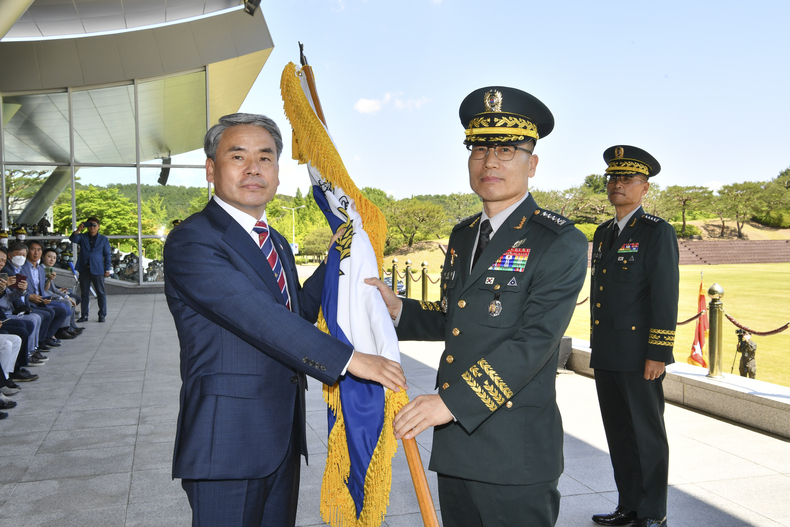 박정환 신임 육군참모총장이 27일 이종섭 국방부장관으로부터 지휘권을 상징하는 육군기를 인수받으로써 공식적으로 대한민국의 국토방위를 책임지는 육군참모총장의 막중한 임무를 시작했다.