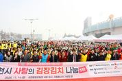 (시사미래신문) 이천시자원봉사센터는 11월 14일 이천종합운동장 서문 입구 자원봉사자탑 앞에서 자원봉사자 240여 명이 참여한 가운데 ‘2024 사랑의 김장김치 나눔’ 행사를 성공적으로 개최했다. 이번 행사는 탑머티리얼, 지엘산업개발, SK하이스텍, 세람저축은행, 이천중앙로타리클럽 등 5개 기업·단체의 지정기탁금 4,500만 원과 경기사회복지공동모금회의 후원으로 추진됐다. (재)이천시자원봉사센터가 주최·주관하여 지역사회에 온정을 전하는 의미 있는 나눔을 실천했다. 특히 올해 김장에는 기탁 기업 임직원과 장애인, 다문화가정, 북한이탈주민, 외국인 근로자 등 다양한 지역 구성원이 함께 참여해, 김장을 담그며 서로의 따뜻한 마음을 나누는 다문화·포용형 행사로 진행됐다. 이날 담근 김장김치 5,000포기는 이천시 14개 읍면동 행정복지센터와 사회복지기관을 통해 저소득층, 홀몸 어르신 등 지역 내 취약계층 1,100가구에 전달됐다. 김경희 시장은 “추운 날씨에도 참여해 주신 기업, 단체, 자원봉사자 여러분께 깊이 감사드린다”라며 “올해는 규모가 더욱 확대됐지만 모두의 따뜻한 마음 덕분에 행사를 잘 마칠 수