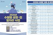 (시사미래신문) 수원특례시가 ‘2026년 수원형 성장-업 일자리사업’에 참여할 시민 46명을 모집한다. 수원형 성장-업 일자리사업은 참여자가 공공부문에서 일하며 실무 경험을 쌓고, 직업 역량을 강화하는 것이다. 민간 일자리로 원활하게 취업하도록 취업경쟁력 향상을 지원한다. 2026년에는 ▲일자리카운슬러 ▲일자리발굴단 ▲청년 프로젝트 매니저 ▲박물관 홍보디자이너 ▲수원컨벤션센터 임대마케터 등 22개 부서 35개의 실무형 일자리를 운영한다. 공공기관·단체와 컨소시엄을 구성해 다양한 분야의 실무 경험과 경력형성 기회를 제공한다. 부서별 채용 계획에 따라 1월 중 참여자를 모집한다. 선발된 참여자는 2026년 2월부터 11월까지 10개월간 근무한다. 임금은 수원시 생활임금을 적용해 시급 1만 1480원을 지급된다. 자세한 내용은 수원시 홈페이지 ‘분야별 정보→일자리·노동→수원형 성장-업 일자리’에서 확인할 수 있다. 수원형 성장-업 일자리사업은 2025년까지 총 353개의 사업으로 716개의 일자리를 창출했다. 수원시 관계자는 “수원형 성장-업 일자리 사업은 공공부문 실무 경험을 쌓아 취업 경